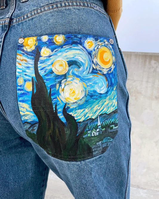 Sold outVan Gogh Starry Night Painted Jeans
